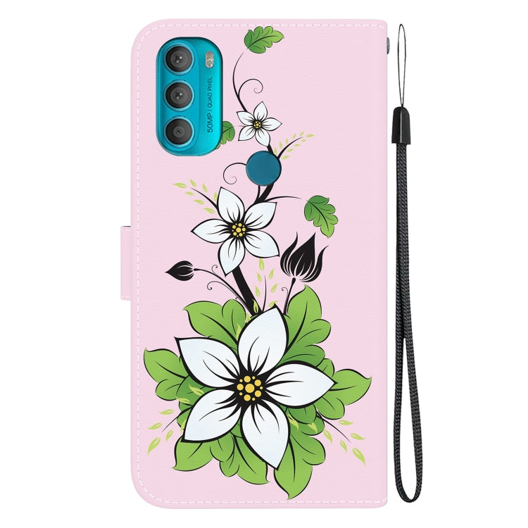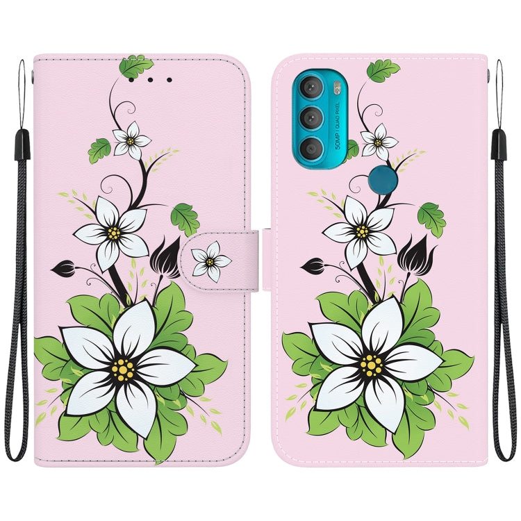 Funda de Cuero para Motorola Moto G71 con Dibujo Coloreado y Textura de Cristal (Lirio)
