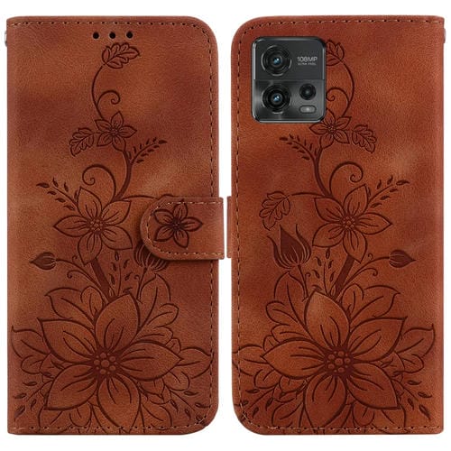 Funda de Cuero con Relieve Lily para Motorola Moto G72 (Marrón)