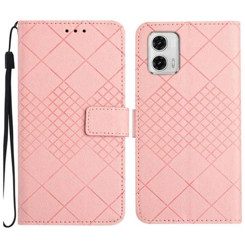 Funda de Cuero para Motorola Moto G73 5G con Textura de Rejilla Rómbica (Rosa)
