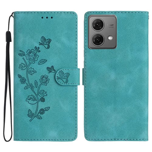 Funda de Cuero para Motorola Moto G84 5G con Estampado de Mariposa y Flor (Azul Cielo)