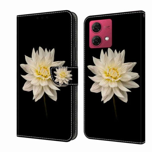 Funda Protectora de Cuero para Motorola Moto G84 Crystal 3D a Prueba de Golpes (Flor Blanca)