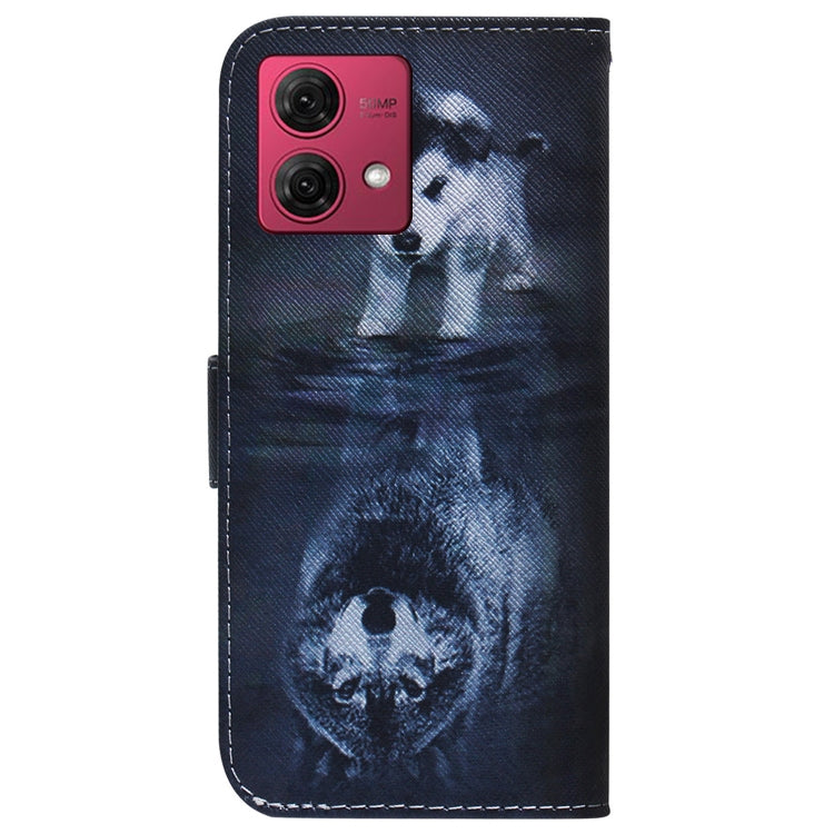 Funda de Cuero con Tapa para Motorola Moto G84 con Dibujo Coloreado (Lobo y Perro)