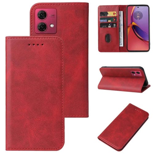 Funda de Cuero para Motorola Moto G84 con Cierre Magnético (Rojo)