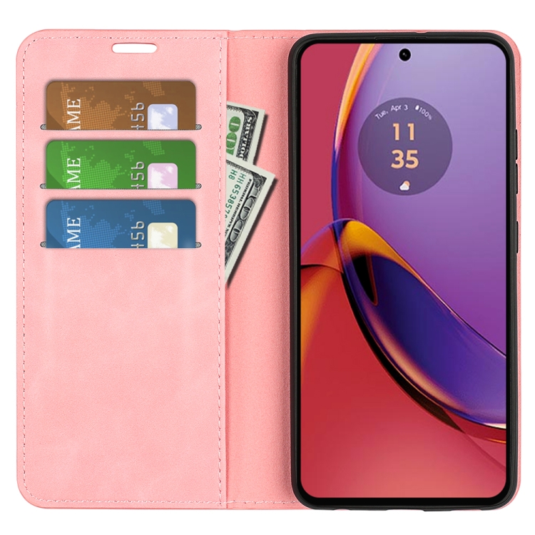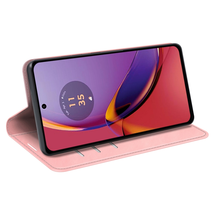 Funda de Cuero para Motorola Moto G84 con Succión Magnética de Piel Retro (Rosa)