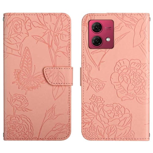 Funda de Cuero para Motorola Moto G84 Ht03 Skin Feel Butterfly con Tapa en Relieve (Rosa)