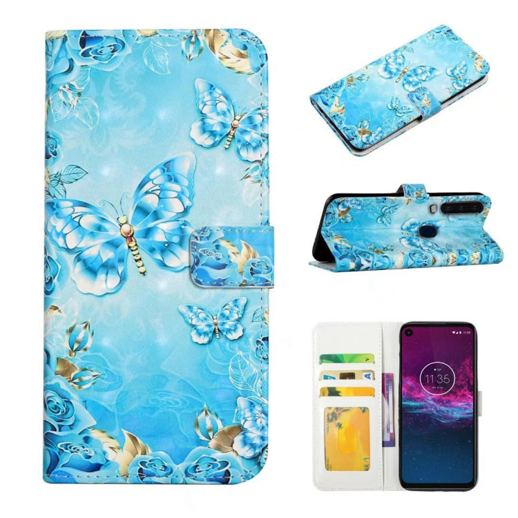 Funda de Cuero para Motorola Moto P40 Power con Dibujo 3D en Relieve (Mariposas Azules)