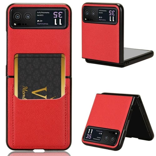 Funda para Motorola Moto Razr 40 con Ranura para Tarjeta y Textura Litchi (Rojo)