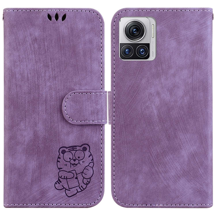 Funda para Motorola Moto X30 Pro 5G de Cuero con Relieve Little Tiger (Púrpura)