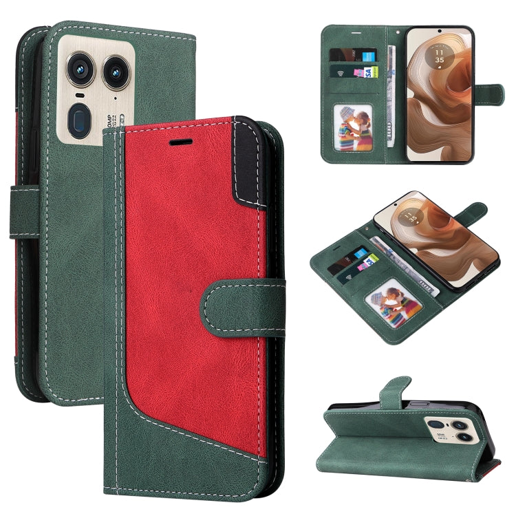 Funda de Cuero para Motorola Moto X50 Ultra con Empalme de Tres Colores (Verde)