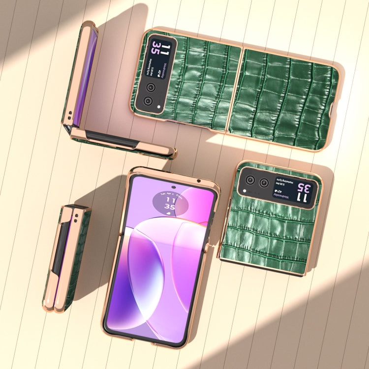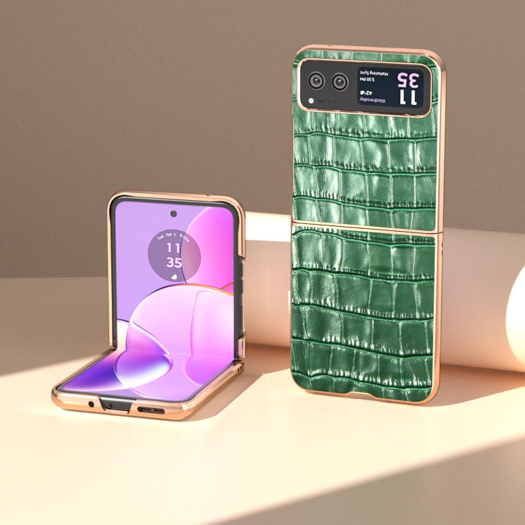 Funda para Motorola Razr 40 Galvanoplastia Cuero Genuino Textura Cocodrilo (Verde Oscuro)