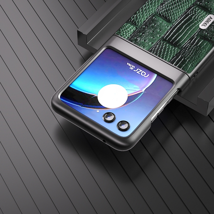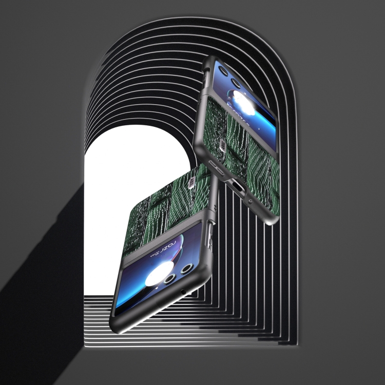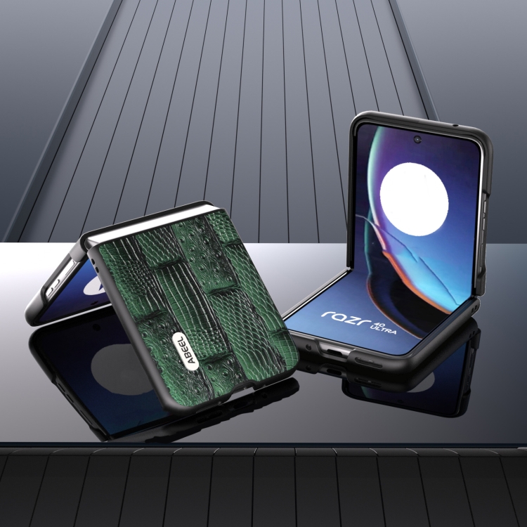 Funda para Motorola Razr 40 Ultra Abeel Cuero Genuino con Patrón Mahjong y Borde Negro (Verde)