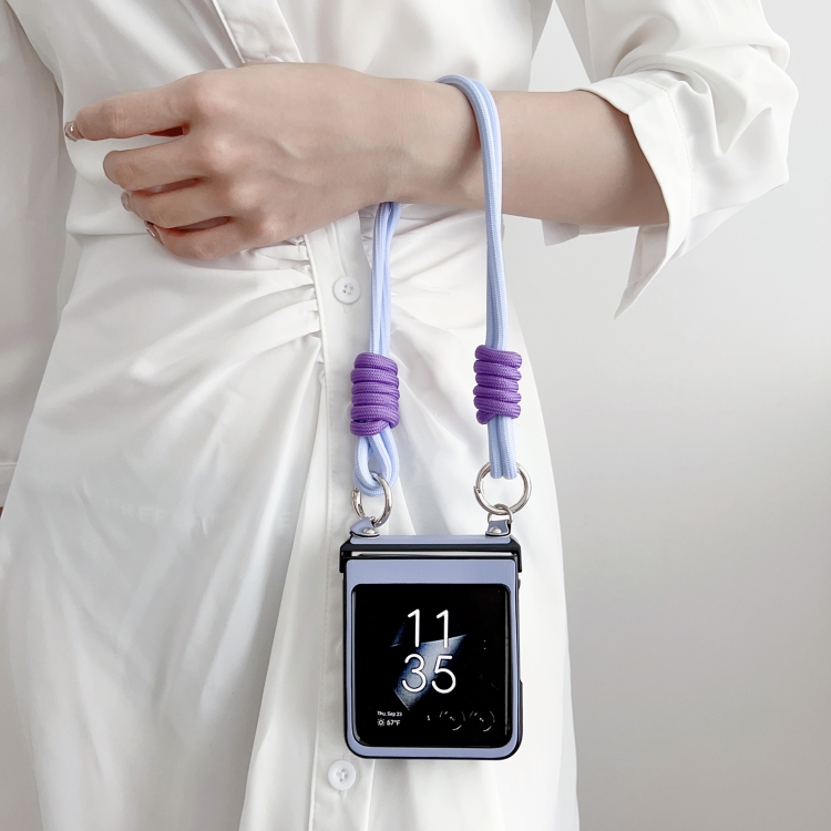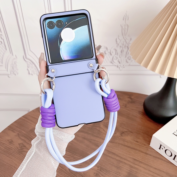 Funda para Motorola Razr 50 Morandi con Textura de Cuero y Correa (Azul)