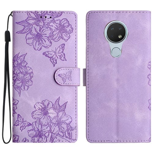 Funda para Teléfono Nokia 6.2/7.2 Cherry Blossom Butterfly Skin Feel de PU en Relieve (Púrpura)