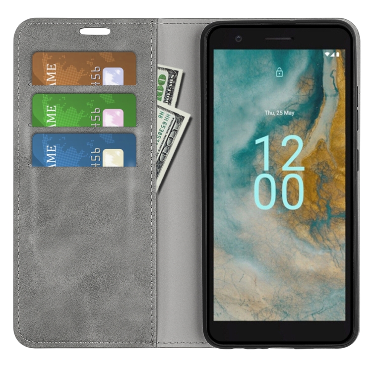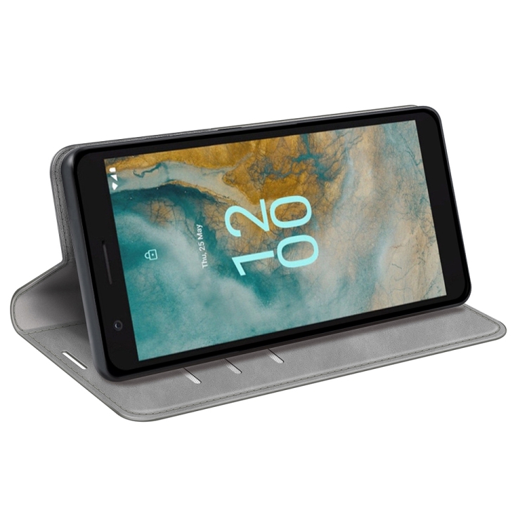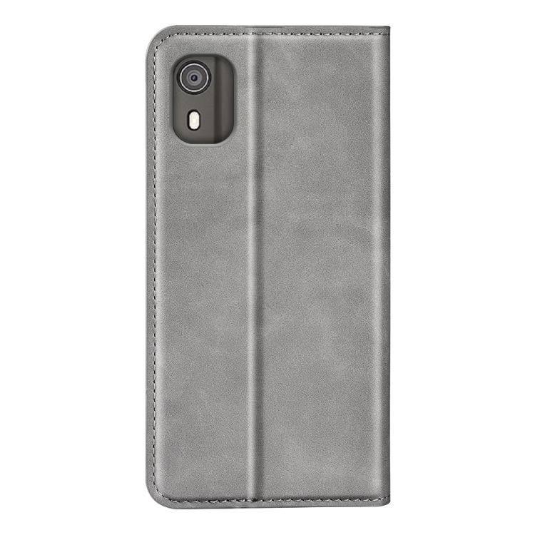 Funda de Cuero para Nokia C02 con Succión Magnética de Piel Retro (Gris)