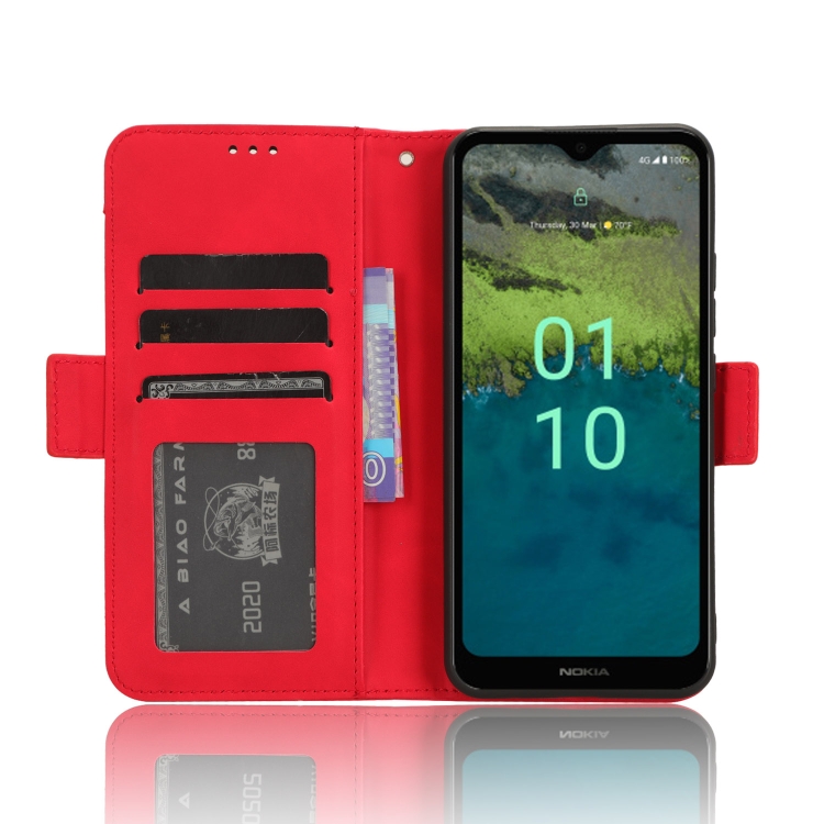 Funda de Cuero para Nokia C110 4G con Textura Skin Feel y Ranuras para Tarjetas (Rojo)