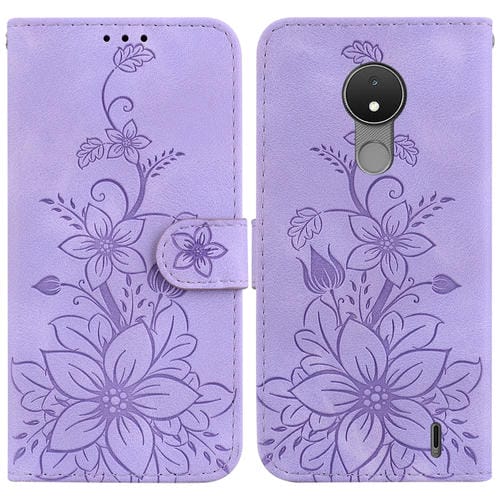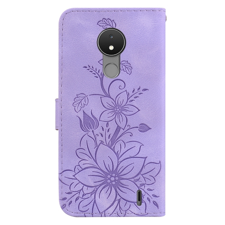 Funda de Cuero en Relieve para Nokia C21 Lily (Púrpura)