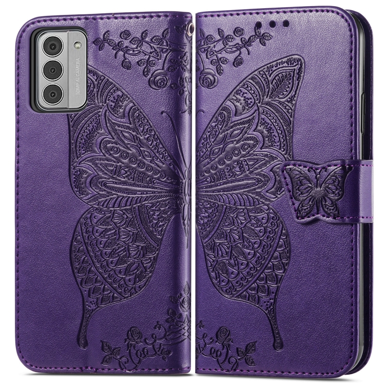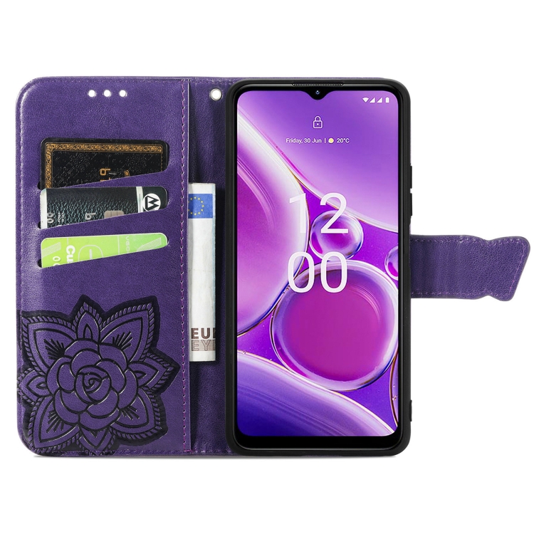 Funda de Cuero Nokia G42 Butterfly Love Flower en Relieve (Púrpura)