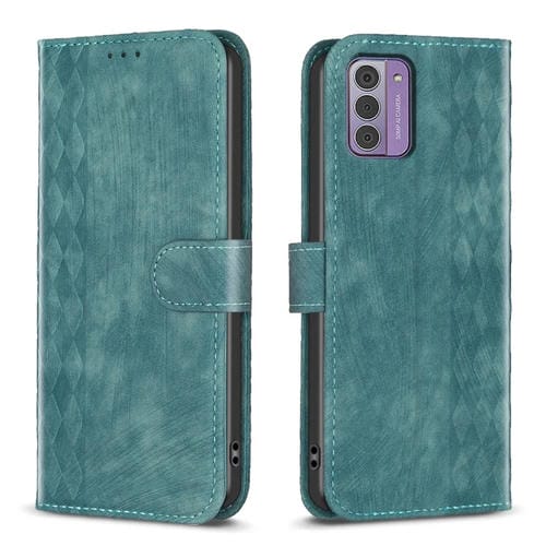 Estuche para Teléfono Nokia G42/G310 de Cuero en Relieve a Cuadros (Verde)