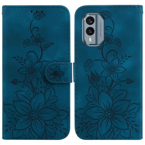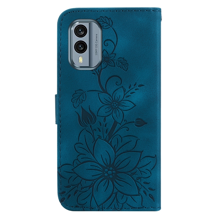 Funda de Teléfono para Nokia X30 Lily de Cuero en Relieve (Azul Oscuro)