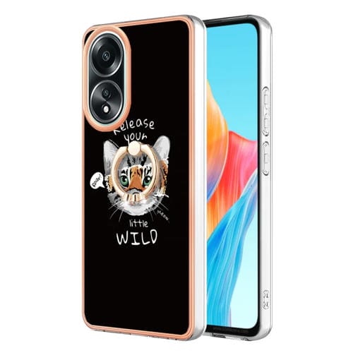 Para Oppo A58 4G Estuche para Teléfono Imd de Doble Cara con Galvanoplastia y Soporte para Anillo (Crecimiento Natural)