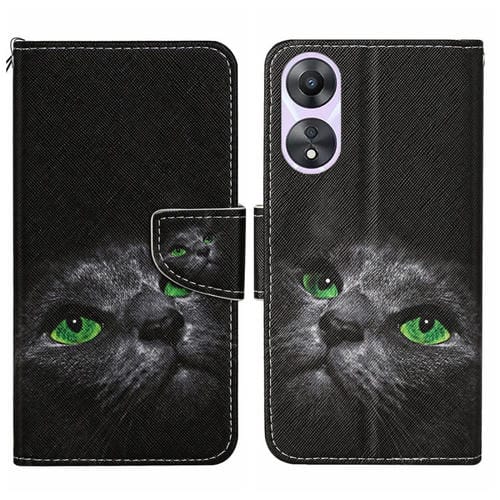 Para Oppo A58 4G Funda de Cuero para Teléfono con Patrón de Dibujo Coloreado (Gato Negro)