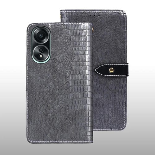 Para Oppo A58 4G Funda para Teléfono de Cuero con Textura de Cocodrilo Idewei Extranjero (Gris)