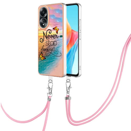 Para Oppo A58 4G Galvanoplastia Imd TPU Funda para Teléfono con Cordón (Mariposa de Ensueño)