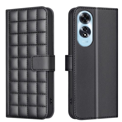 Para Oppo A60 4G Funda de Cuero con Textura Cuadrada (Negro)