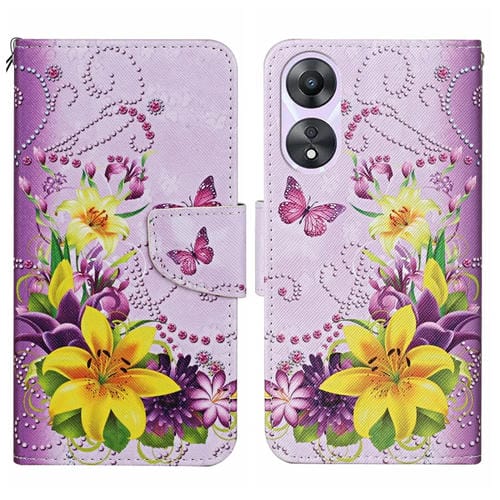 Para Oppo A78 4G Funda de Cuero para Teléfono con Patrón de Dibujo Coloreado (Mariposa de Flor Amarilla)