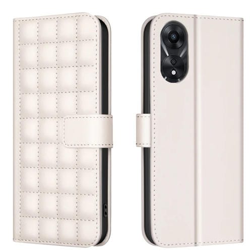 Para Oppo A78 5G Funda de Cuero con Textura Cuadrada (Beige)