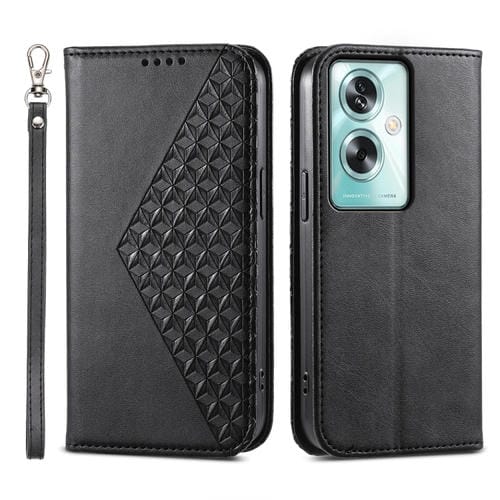 Para Oppo A79 5G Cubic Grid Calf Texture Funda de Cuero Magnética para Teléfono (Negro)