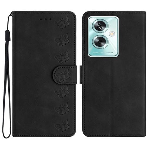 Para Oppo A79 5G Seven Butterflies Funda de Cuero para Teléfono En Relieve (Negro)