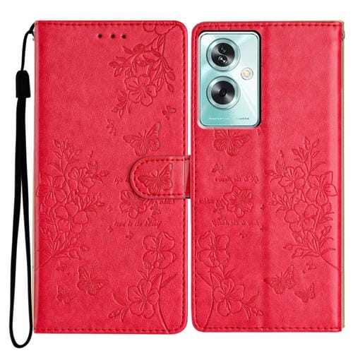 Para Oppo A79 / A2 5G Funda para Teléfono de Cuero con Relieve de Flor de Amor y Mariposa (Rojo)