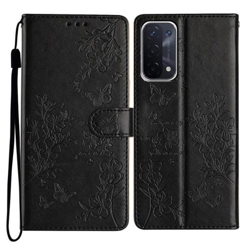 Para Oppo A93 5G Butterfly Love Flower Funda de Cuero para Teléfono En Relieve (Negro)