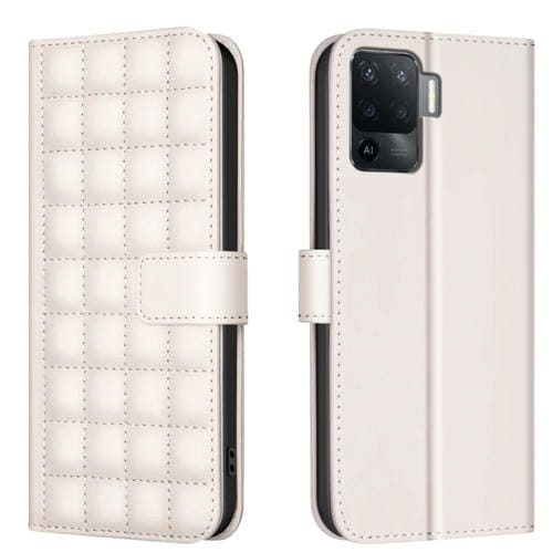 Para Oppo A94 4G / Reno5 F / F19 Pro Funda de Cuero para Teléfono con Textura Cuadrada (Beige)
