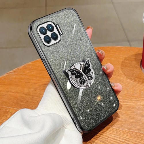 Para Oppo F17 Pro Funda para Teléfono de TPU con Soporte de Mariposa con Brillo Degradado Plateado (Negro)