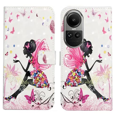 Para Oppo Reno10 5G / Reno10 Pro 5G Funda de Cuero para Teléfono con Dibujo 3D En Relieve de Aceite Global (Hada de Flores)