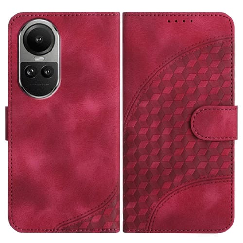 Para Oppo Reno10 Pro 5G / Reno10 5G Global Yx0060 Funda de Cuero para Teléfono con Relieve y Cabeza de Elefante con Cordón (Rojo Rosa)