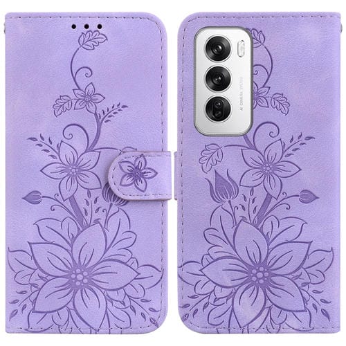 Pour OPPO Reno12 5G Global Lily Étui de téléphone en cuir gaufré (Violet)