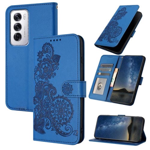 Para Oppo Reno12 Global Datura Flower Funda de Cuero con Tapa En Relieve (Azul)