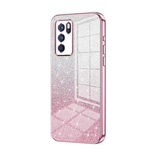 Para Oppo Reno6 Pro Funda para Teléfono Galvanizada con Polvo de Brillo Degradado Indio (Rosa)