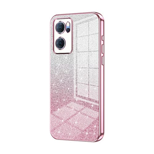 Para Oppo Reno7 5G Estuche para Teléfono Galvanizado con Polvo de Brillo Degradado (Rosa)