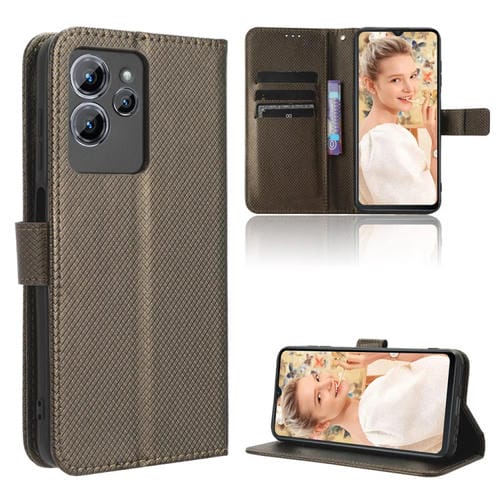 Funda para Oukitel C32 Caja de Teléfono Cuero Textura de Diamante (Marrón)