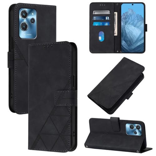 Funda para Oukitel C32 Crossbody de Cuero con Tapa en Relieve 3D (Negro)