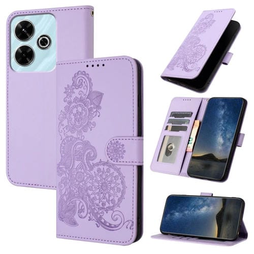 Para Redmi 13 4G Datura Flower Funda de Cuero con Tapa En Relieve (Púrpura)