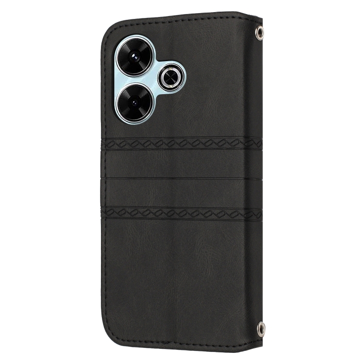 Para Redmi 13 4G Funda de Cuero con Sensación de Piel y Rayas En Relieve (Negro)