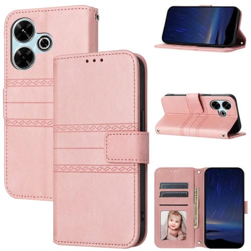 Para Redmi 13 4G Funda de Cuero con Sensación de Piel y Rayas En Relieve (Rosa)