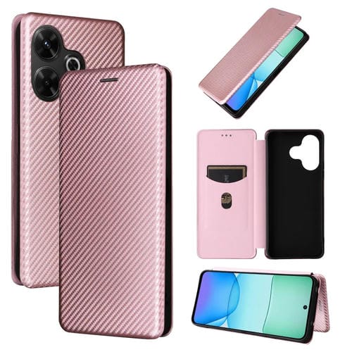 Para Redmi 13 4G Funda de Cuero con Tapa con Textura de Fibra de Carbono (Rosa)