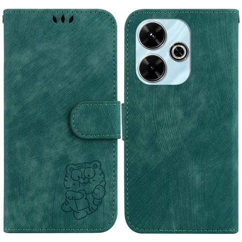 Para Redmi 13 4G Funda de Teléfono de Cuero con Relieve Little Tiger (Verde)
