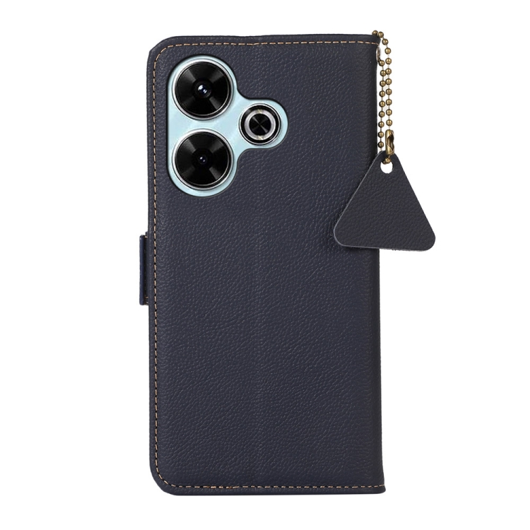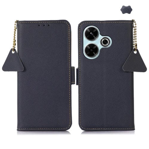 Para Redmi 13 4G Funda para Teléfono Rfid de Cuero Genuino Tj con Lado Magnético (Azul)